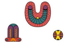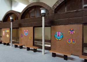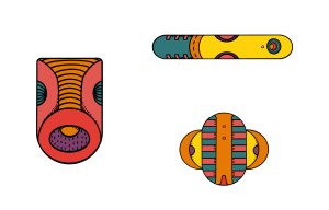 Inspired by the key words chosen by Klarebergsskolan – security, participation, diversity and movement – I have created a happy collection of colorful characters, where everyone is different, and everyone plays a part. The work consists of 9 wall-hung objects that celebrate their differences in size and form, but are connected through color scheme and imagery. The abstract characters invite imaginative interpretation and exciting conversations. The playful placement of the objects creates a sense of movement and a contrast to the brown monotony of the façade, while each object itself has a harmonious symmetry. The name “All Together Now! (it takes all sorts to make a world) ” reflects the visual story where similarities and differences are celebrated, together!